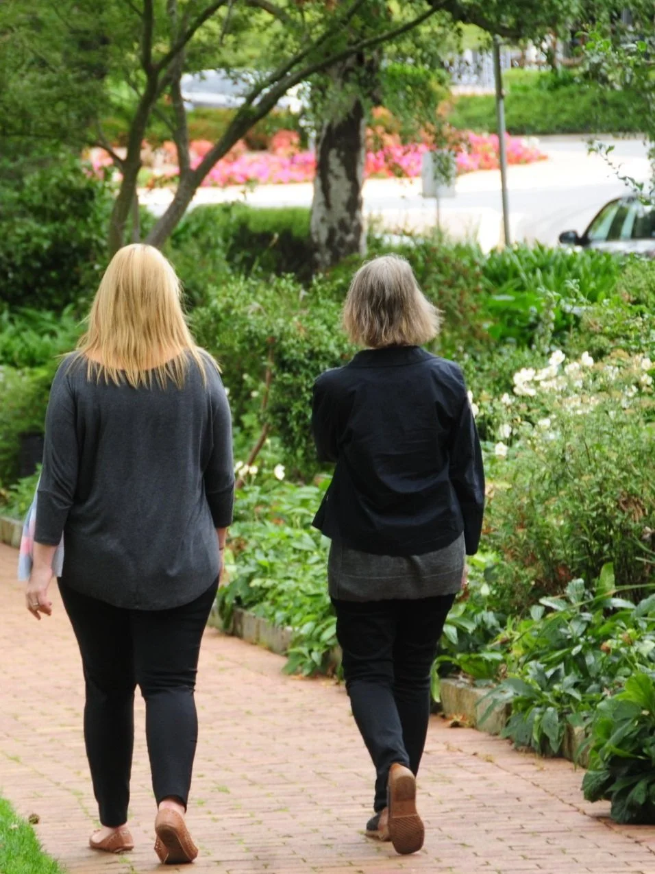 If you don’t feel like walking or don’t want to be seen by others, there will always be the option to chat indoors or in a secluded outdoor space.